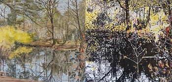 ‘Schilderen is me het liefst, de ultieme kunstvorm. Omdat je vanuit het niets hele werelden kunt creëren, helemaal je eigen ding doet en enkel jij het hoe en wat, alsook het eindresultaat bepaalt. Mijn werk is figuratief. Niet (hyper)realistisch, want het materiaal blijft zichtbaar, het schilderen een factor. Eerst zet ik het schilderij aan de hand van studies en foto’s met potlood op en begin vervolgens met schilderen: de eerste laag, bijna als een aquarel zo dun, gevolgd door meerdere iets meer dekkende lagen. De vertaling van het onderwerp in het medium levert een aantal beeldende problemen op: plaatsing in het vlak, de organisatie van de ruimte, kleur, licht en vorm, het spanningsveld tussen verf en voorstelling, vereenvoudiging en detaillering. Dit hoort bij het schilderen. De beleving en studies van het onderwerp, de vertaling in het schilderij en het schilderen als proces spelen alle drie een rol.’